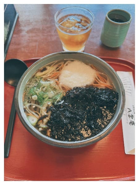附近要找吃的感覺要找很久,最後路過一個看起來很漂亮的店就走進去,結果進去讓我好尷尬……是不是只有我單獨來的?為什麼每桌都兩個兩個人呢?不過蕎麥是真的很好吃。還有我為什麼要點熱的湯到底在想什麼。