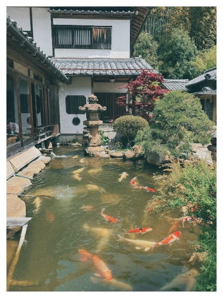 吃完後繞繞餐廳的庭院,庭院超漂亮,看得出來花超大的心力在維持,也有看到正在打掃的員工。然後餐廳也可以買魚飼料的樣子,看到有群大姊姊買了飼料在這裡餵鯉魚。