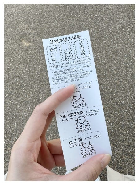 參觀松江城要門票,售票處的說買套票比較划算,反正我當天也沒什麼規劃,最後就買了可以逛三個點的票。