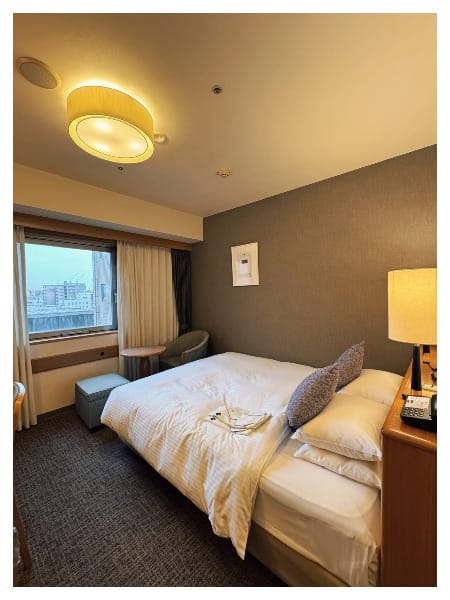 這次住的地方是後樂飯店,當時訂房沒有想太多,單純就是要找離車站近的旅館,看地址時發現這間在河畔旁,就決定要訂了。官網上面可以選靠河邊的房型,訂房網記得就沒有特別標記,接著試著去官網訂房才發現要有日本戶籍地址才能訂的樣子……