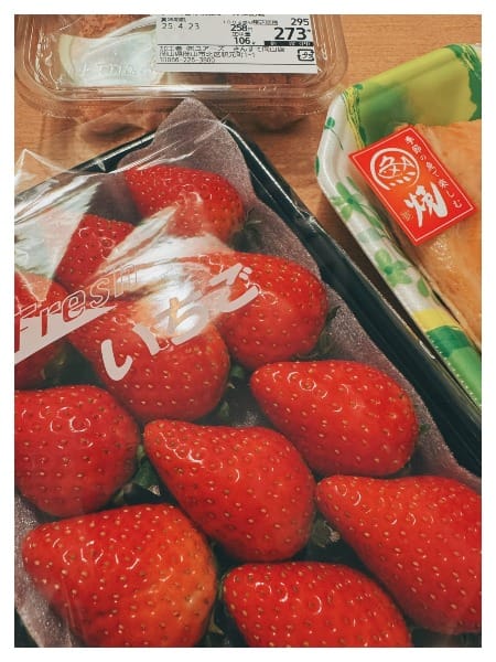 考量到我沒有包早餐方案(原本就打算早餐去飯店附近找不錯的咖啡店吃XD),但這天從松江過來真的是累到不行,明天想要直接睡到飽,就順便在超市買好早餐。最後買好早餐、飲料跟晚餐要吃的烤魚、明太子還有水果,回程再繞去超商買個主餐就準備回旅館休息了。