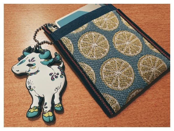 我有在松江的紀念品店買了小泉八雲的紀念餅乾鐵盒,它的sample展示是各種妖怪的餅乾,覺得超可愛就決定收它,另外就是先前說的在武家那邊的賣店買的車票夾,說是用褟褟米邊緣的布製作,我後來發現其實左右兩邊沒有很緊,卡片會滑動(哭啊)後來回國就拿去塞別的東西了。上面的牛的吊飾是路邊扭蛋扭到的。