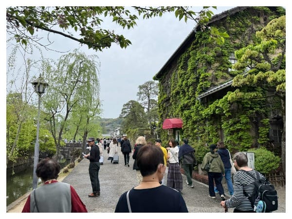 後來跟著前面的人走很快就看到有一整區建築風格超級不一樣,看來是成功抵達了。在那之前,先去了靠近出入口的大原美術館。