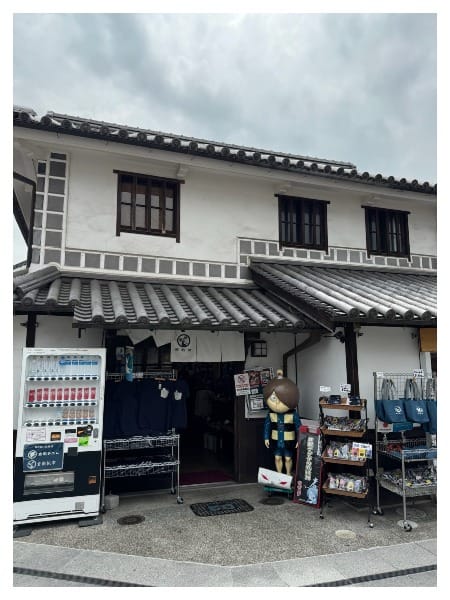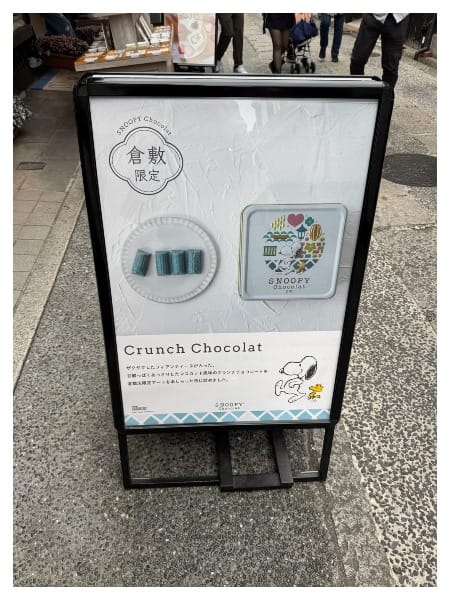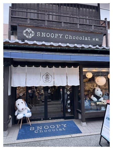 倉敷原本是做紡織跟藍染的小鎮,這邊很多連鎖店舖也都是配合倉敷的特色做調整,像是史努比巧克力專賣店甚至還推出藍色的巧克力等產品,不知道到底是什麼味道……?(沒有買)