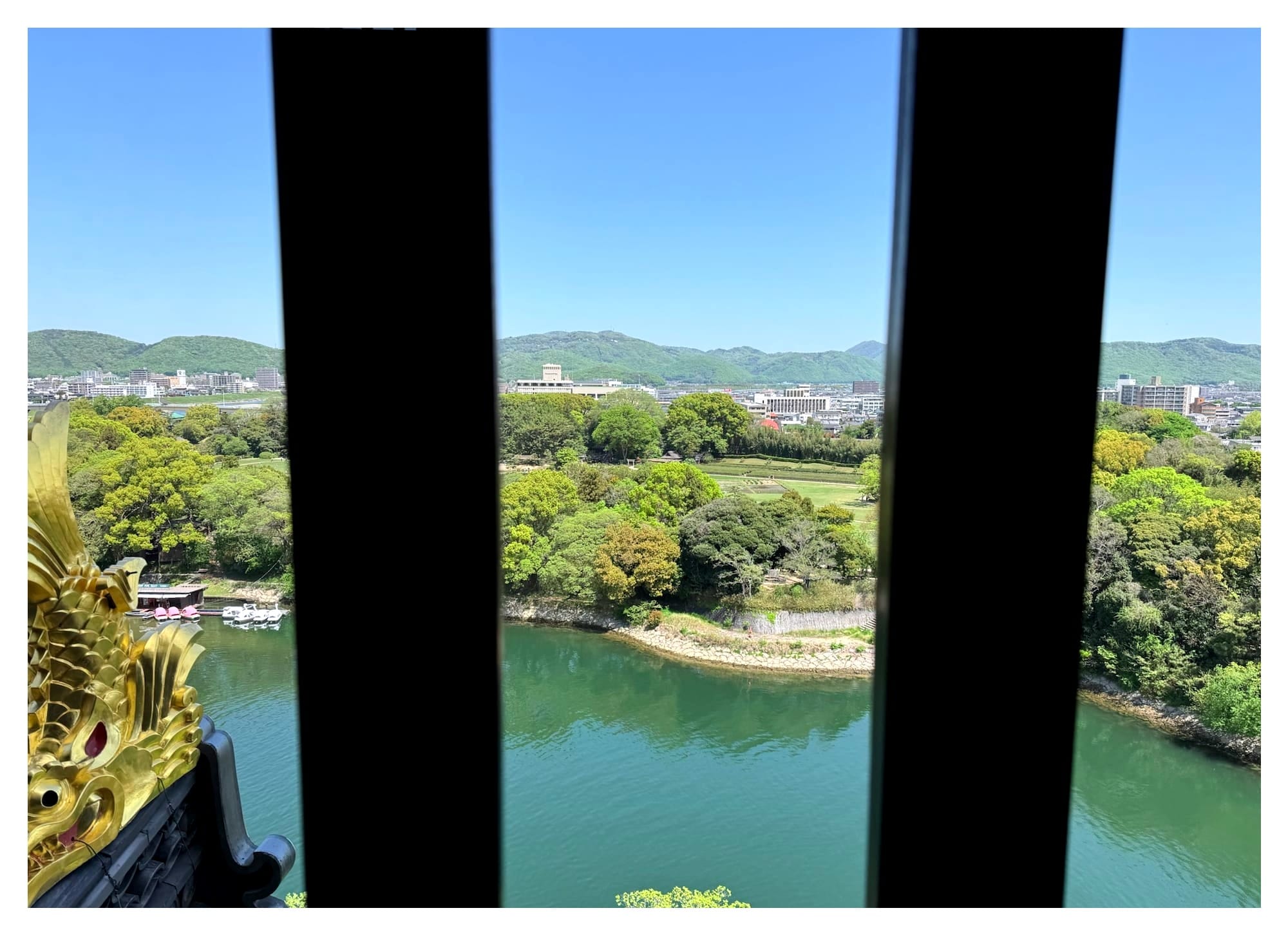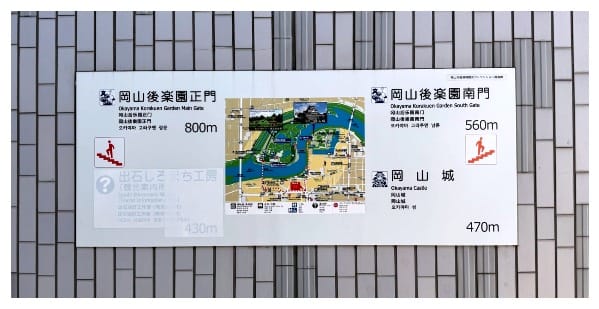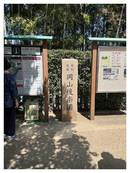 因為二戰的時候岡山城的天守被燒毀,所以後來有再重建,裡面有完善的無障礙設施跟電梯(喂)真的是非常方便,與其說是古城,說是新的展示館我覺得也算合適?在逛完所有展示後,就跟著其他觀光客的腳步,準備前往地圖北方那一大塊的岡山後樂園。