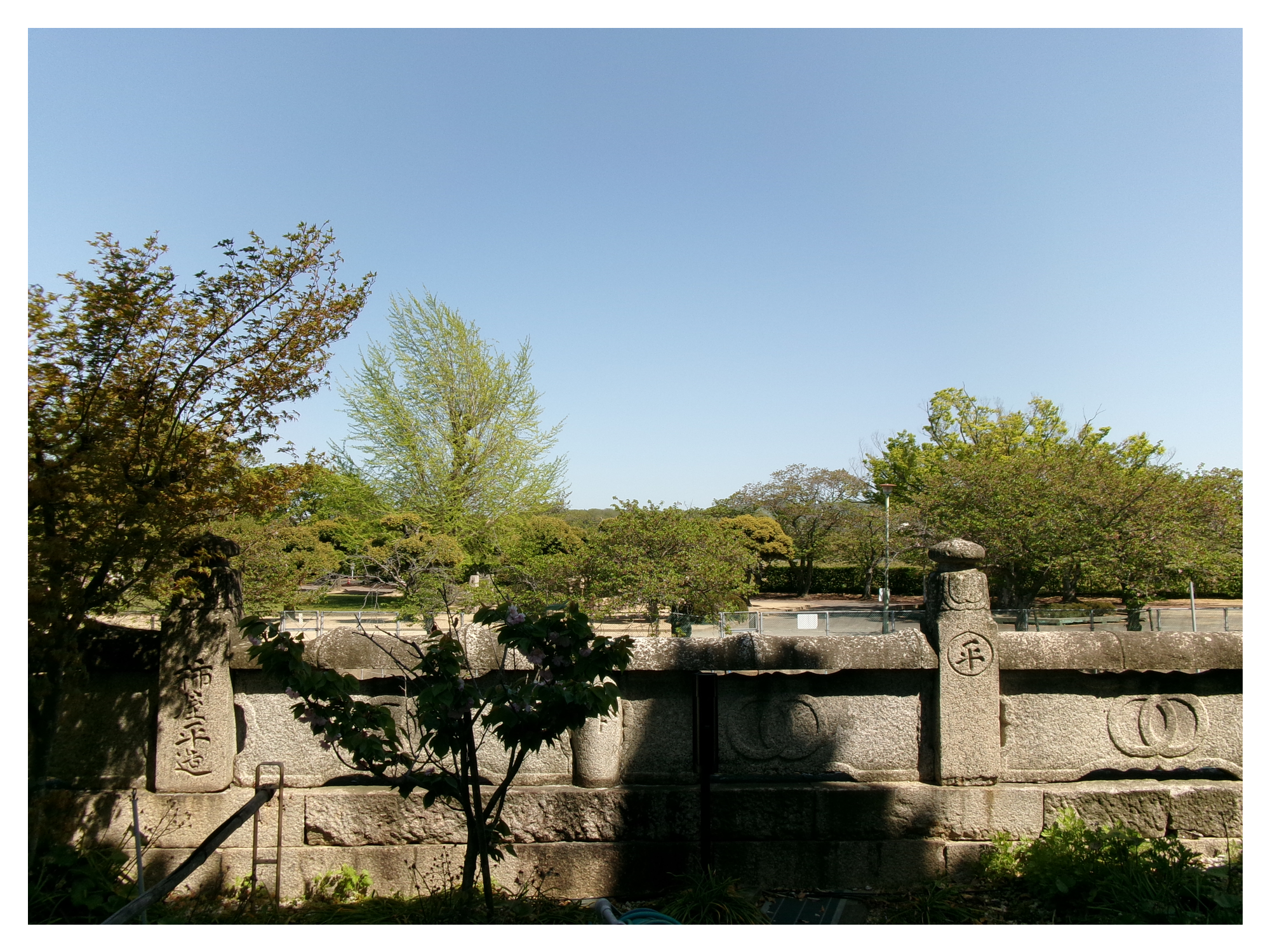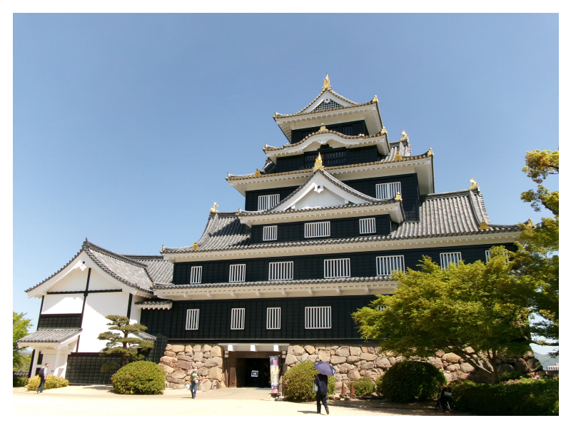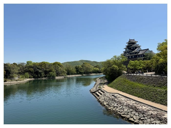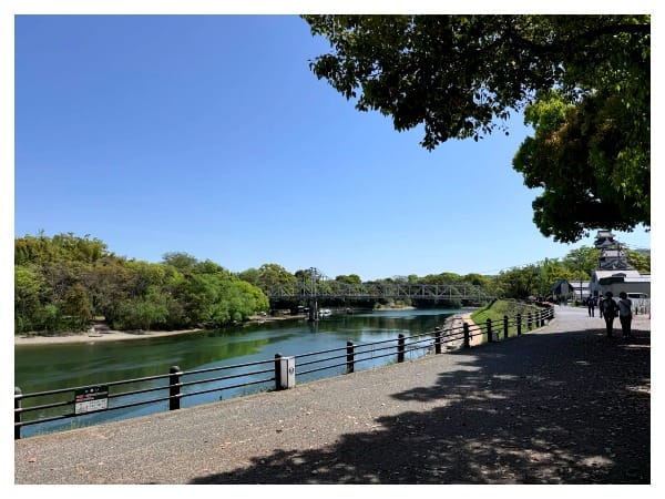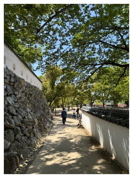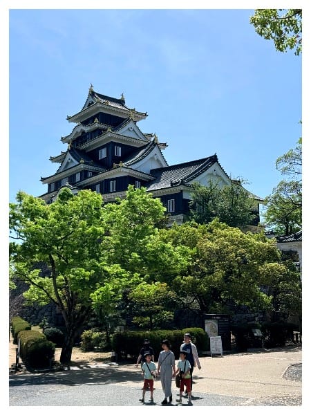 沿著城池的周邊走,遠遠的就可以看到岡山城在眼前。簡介上是說,因為城的牆壁是黑色的,所以也叫做烏城(其他城不是黑色),這座也同時是日本的史跡,也是日本百座名城的其中一座。