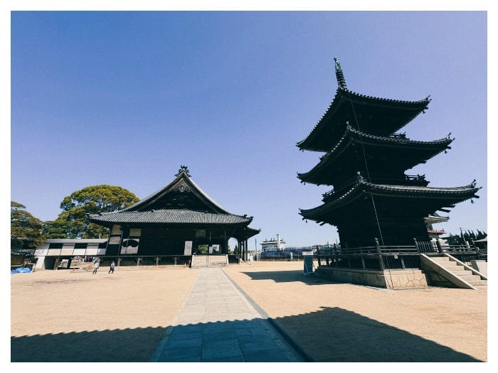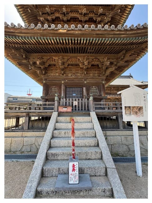751年(天平正寶3年),周王國(山口縣)諸所人藤原湊姫,篤信觀世音菩薩,因與觀世音菩薩有緣,在金岡村建立了隱居處。據說是從供奉千手觀音時開始的。境內古建築林立,關門、二王門、三層塔、佛經等都是必看的景點。還可以參觀本殿(五服堂)的內殿和牛玉聖殿(成人500日元/兒童200日元)。